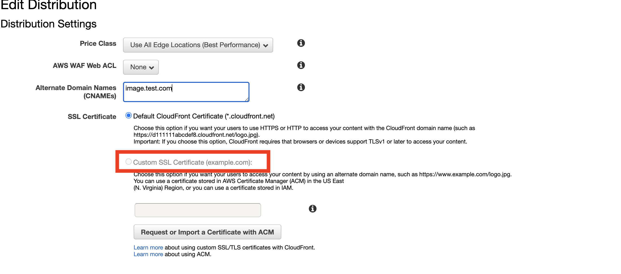 | com.amazonaws.services.cloudfront.model.InvalidViewerCertificateException: To add an alternate domain name (CNAME) to a CloudFront distribution, you must attach a trusted certificate that validates your authorization to use the domain name. For more details, see: https://docs.aws.amazon.com/AmazonCloudFront/latest/DeveloperGuide/CNAMEs.html#alternate-domain-names-requirements (Service: AmazonCloudFront; Status Code: 400; Error Code: InvalidViewerCertificate; Request ID: bea42f2a-a109-47f0-8eb3-c31c44788fae; Proxy: null) |