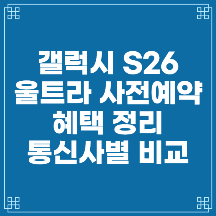 이 글에서는 갤럭시 S26 울트라 사전예약 일정, 예상 혜택, 통신사별 비교, 자급제 vs 약정 선택 기준까지 한 번에 정리합니다. 사전예약 당일 실수 없이 최대 혜택을 받을 수 있도록 미리 준비해두세요.