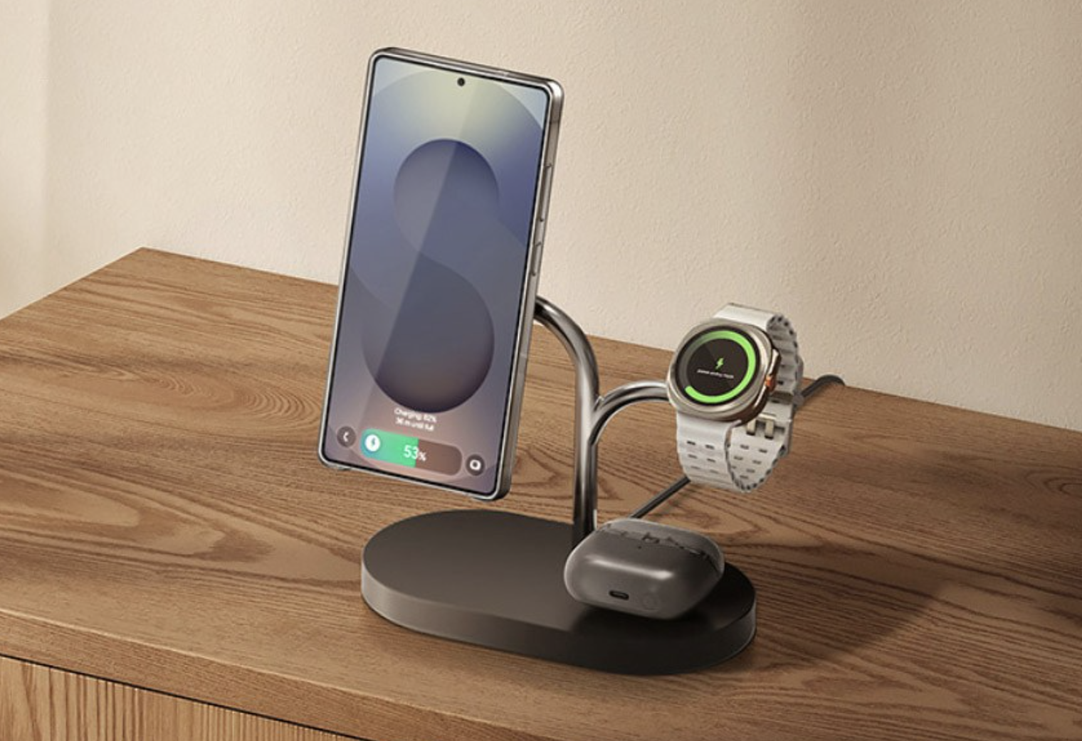 삼성 갤럭시 Qi2 3in1 무선충전기는 갤럭시 S25 이상 + 갤럭시 워치 조합 사용자에게 최적화된 제품입니다. Qi2 마그넷 충전으로 정확한 위치에 부착되고, 3대 기기를 동시에 충전할 수 있어 책상 정리에 확실한 효과가 있습니다. 45W 어댑터 포함으로 추가 비용 부담도 적습니다.