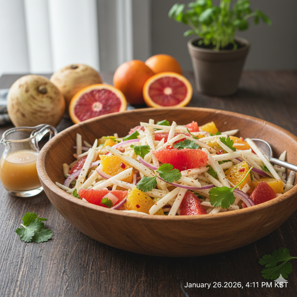 - 히카마 샐러드: 히카마 채썰기 + 오이 + 레몬즙