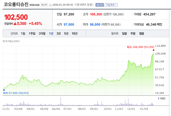 현재 시총 약 10조원으로 가장 유력한 대장주 후보입니다.