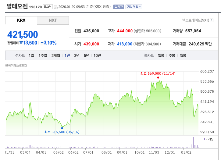 - 알테오젠: 2026년 2~3분기 코스피 이전 예상