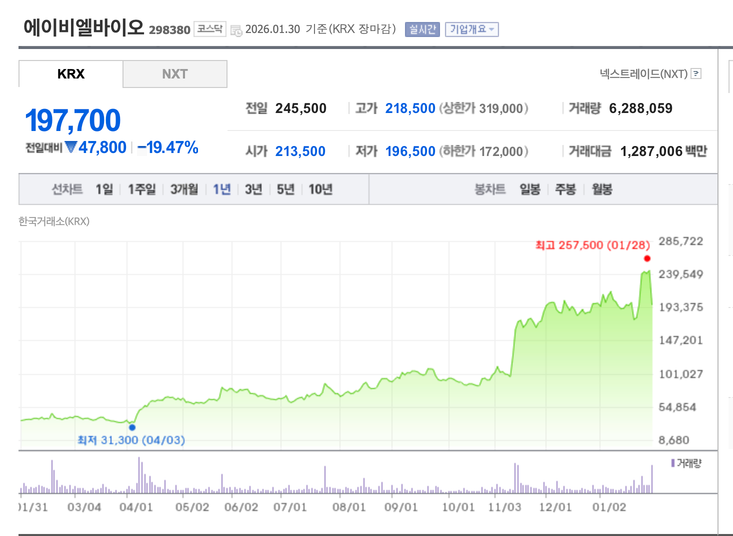 에이비엘바이오는 2025년 한 해 동안 주가가 6배 이상 급등하며 폭발적 성장을 보였습니다. 알테오젠은 이미 대형주 반열에 올라 안정적인 상승세를 유지 중입니다.