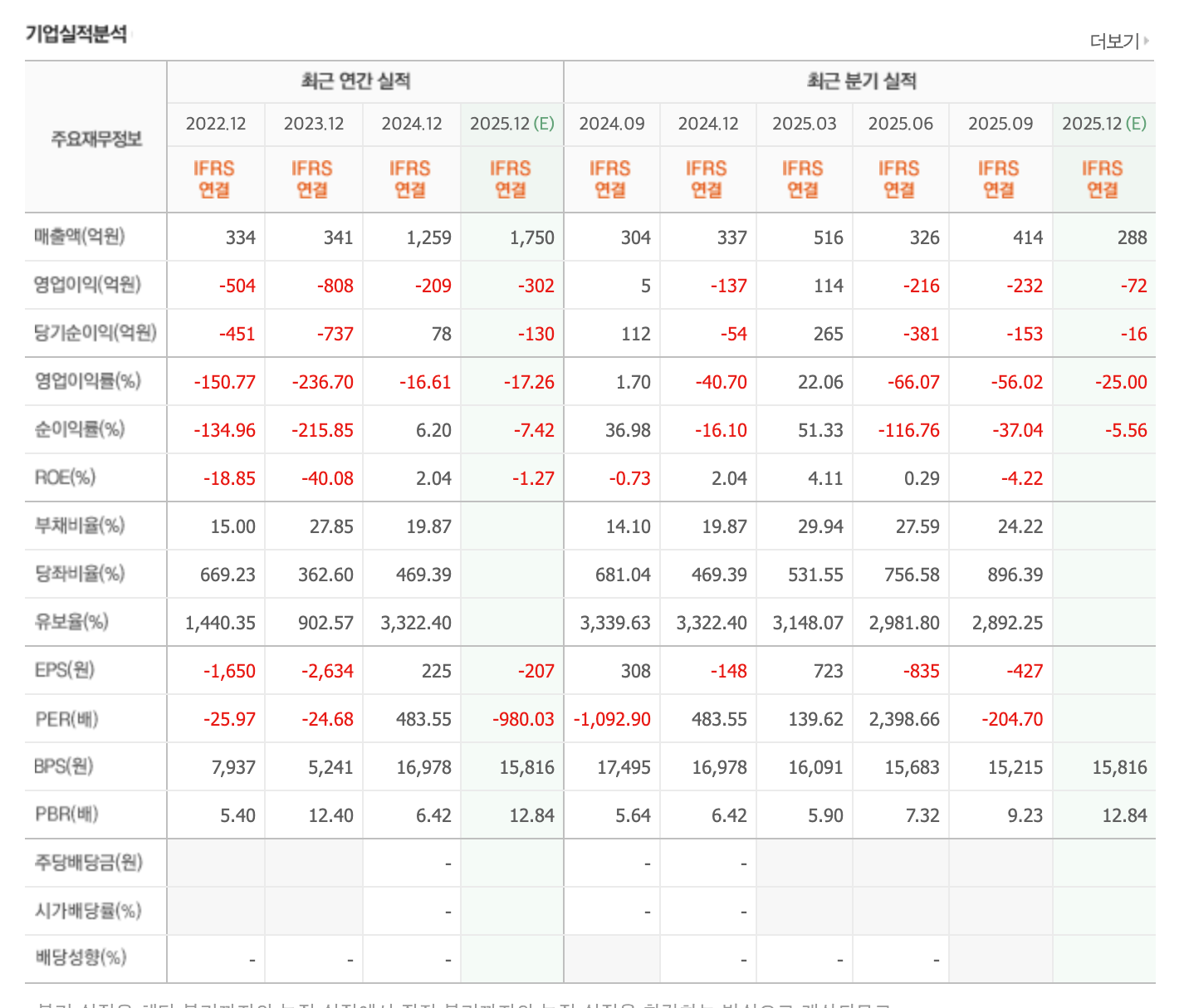 - 영업이익: 약 -209억원 (적자 지속, 다만 적자폭 대폭 축소)