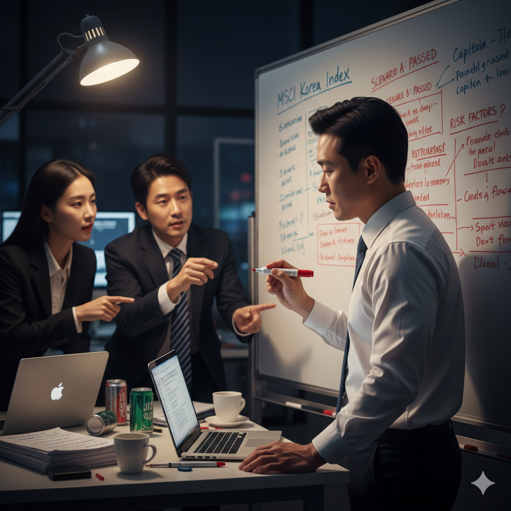 MSCI 지수를 추종하는 글로벌 패시브 펀드 규모는 약 16.5조 달러(약 2경 원 이상)입니다. 이 펀드들은 지수에 포함된 종목만 보유할 수 있으므로, 특정 종목이 편출되면 보유 물량을 의무적으로 매도해야 합니다.