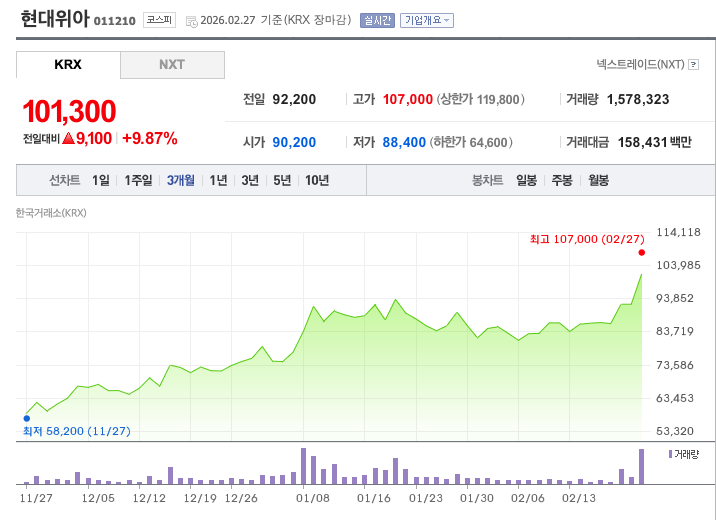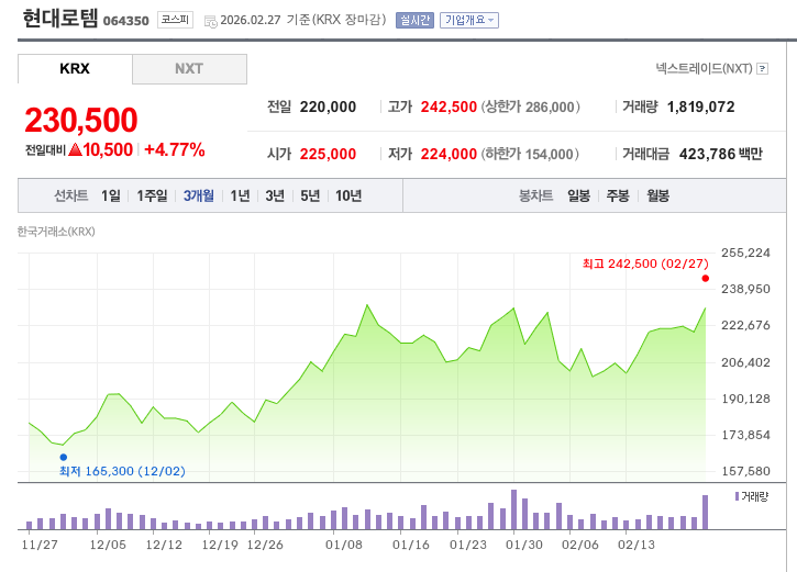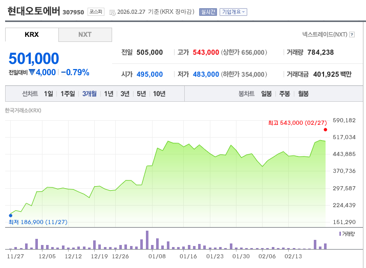 - 모멘텀: 2월 27일 발표 당일 +10.67% 상승, 사상 최고가 67만 4,000원 경신