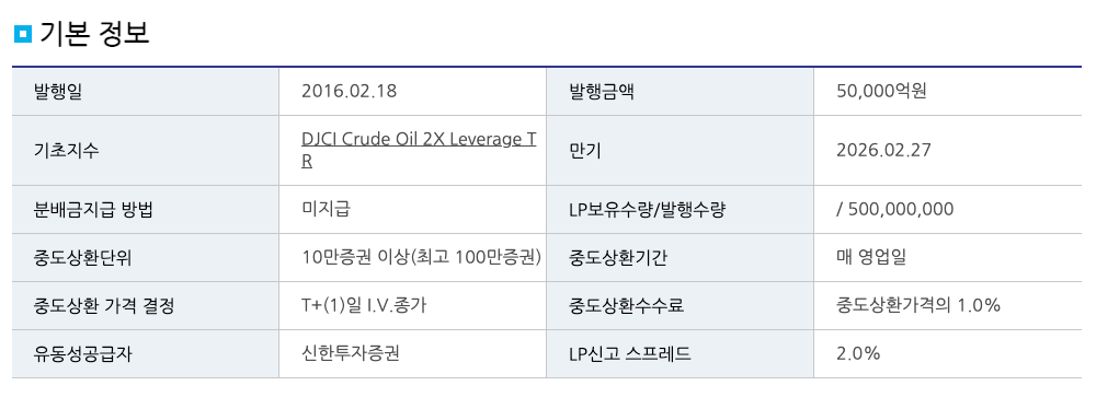 - 기초지수: S&P GSCI Enhanced Crude Oil Index Excess Return
