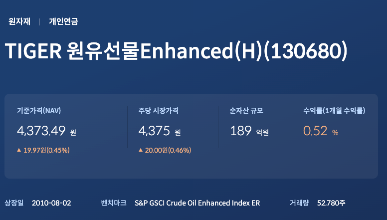 TIGER 원유선물Enhanced(H) (종목코드: 130680)
