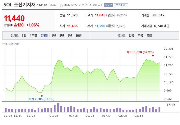 - SOL 조선TOP3플러스: 268만 주 (가장 활발)