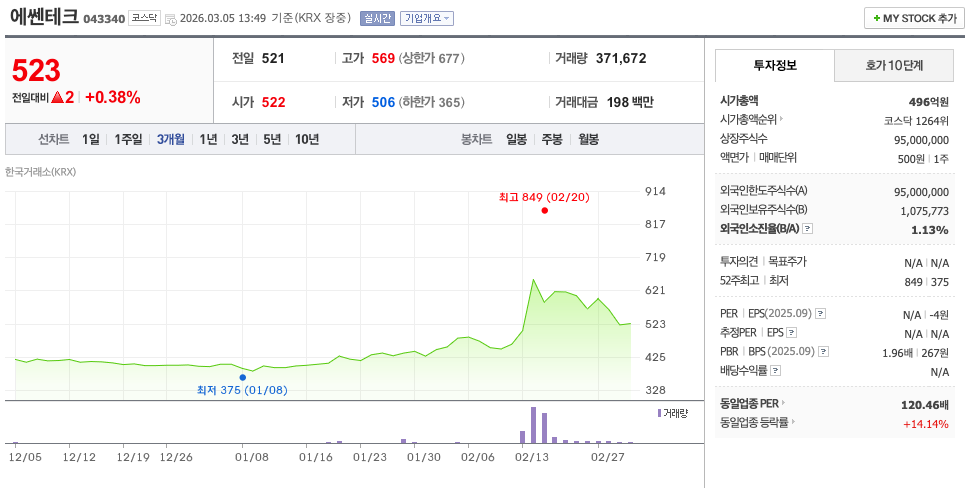 📌 에쎈테크 (217730, 코스닥)