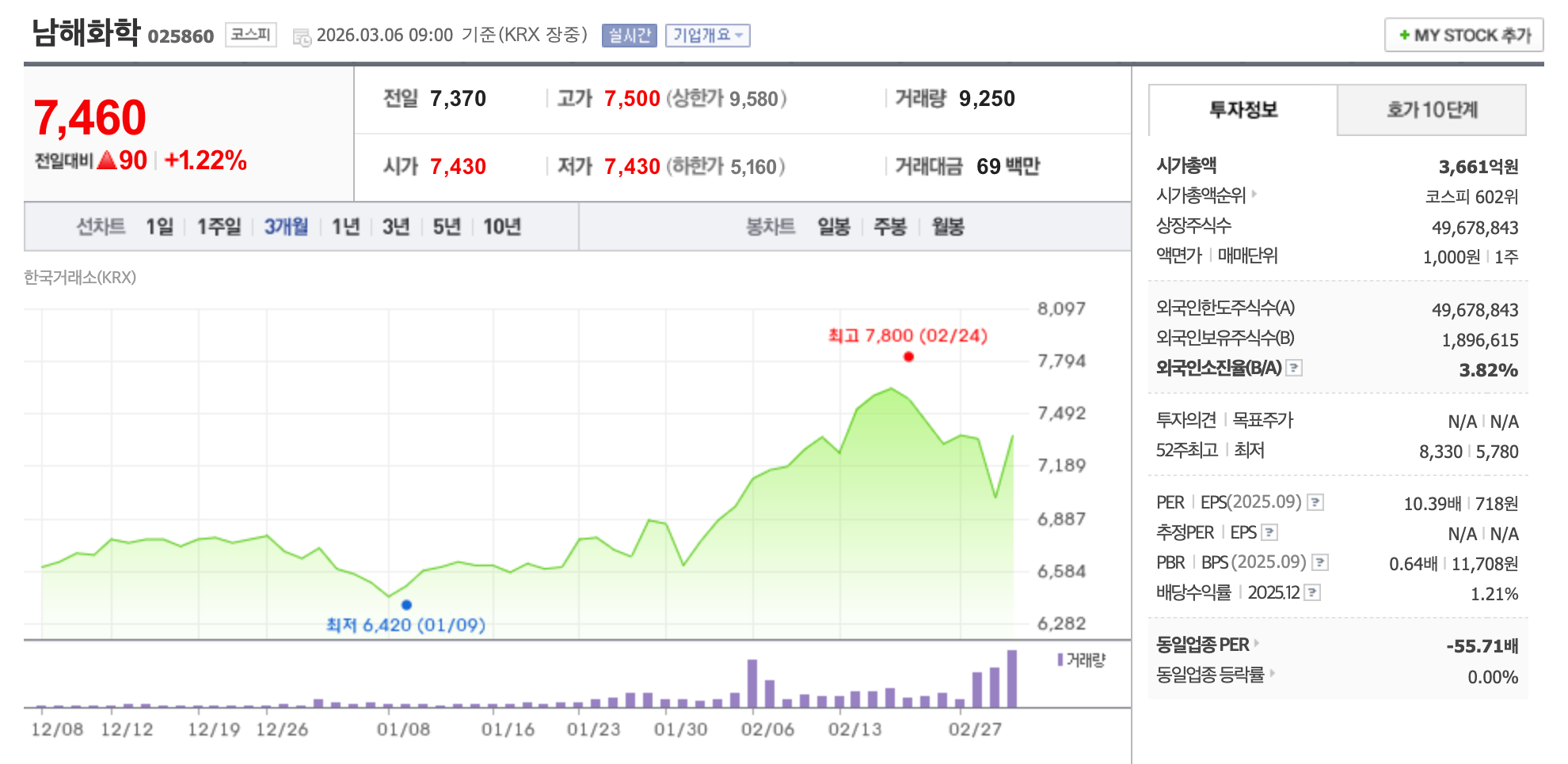 📌 남해화학 (025860, 코스피) - 대장주