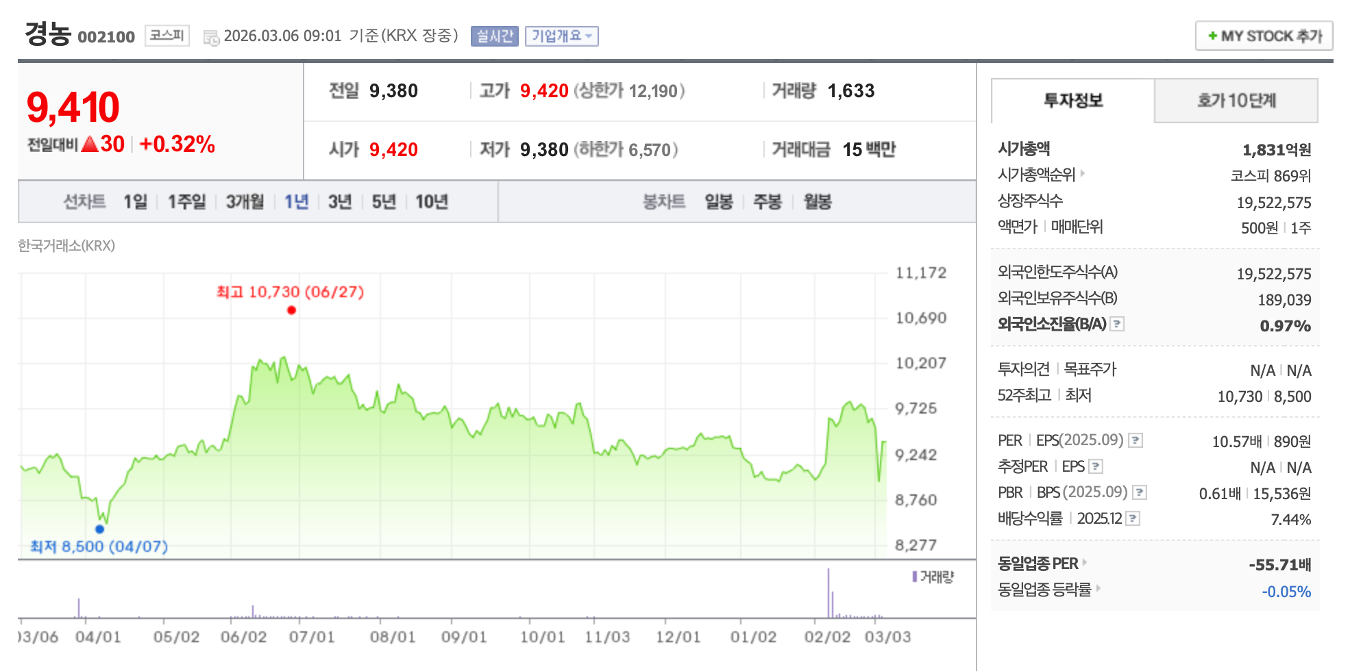 💡 경농 (002100, 코스피)