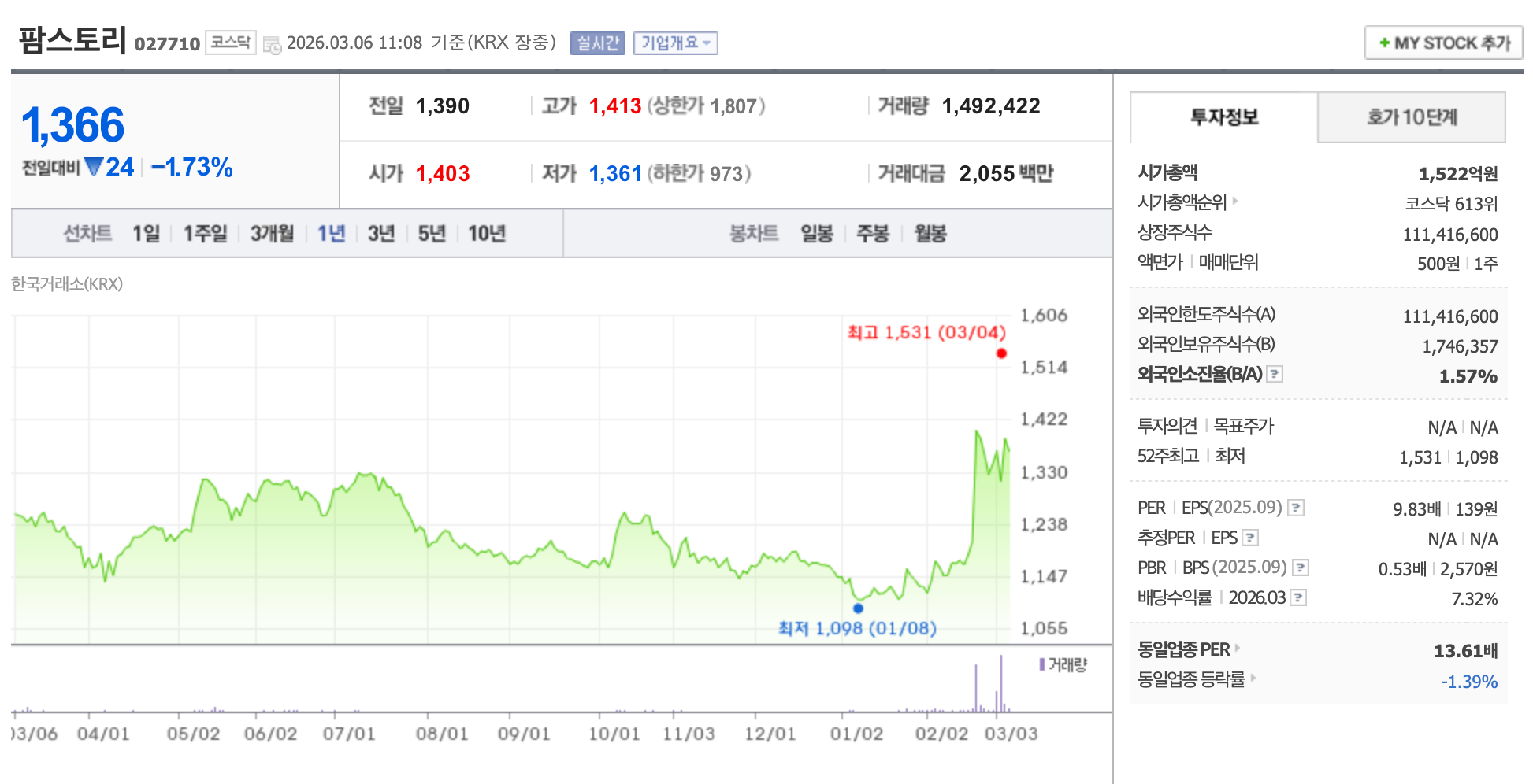 📌 팜스토리 (027710, 코스닥)