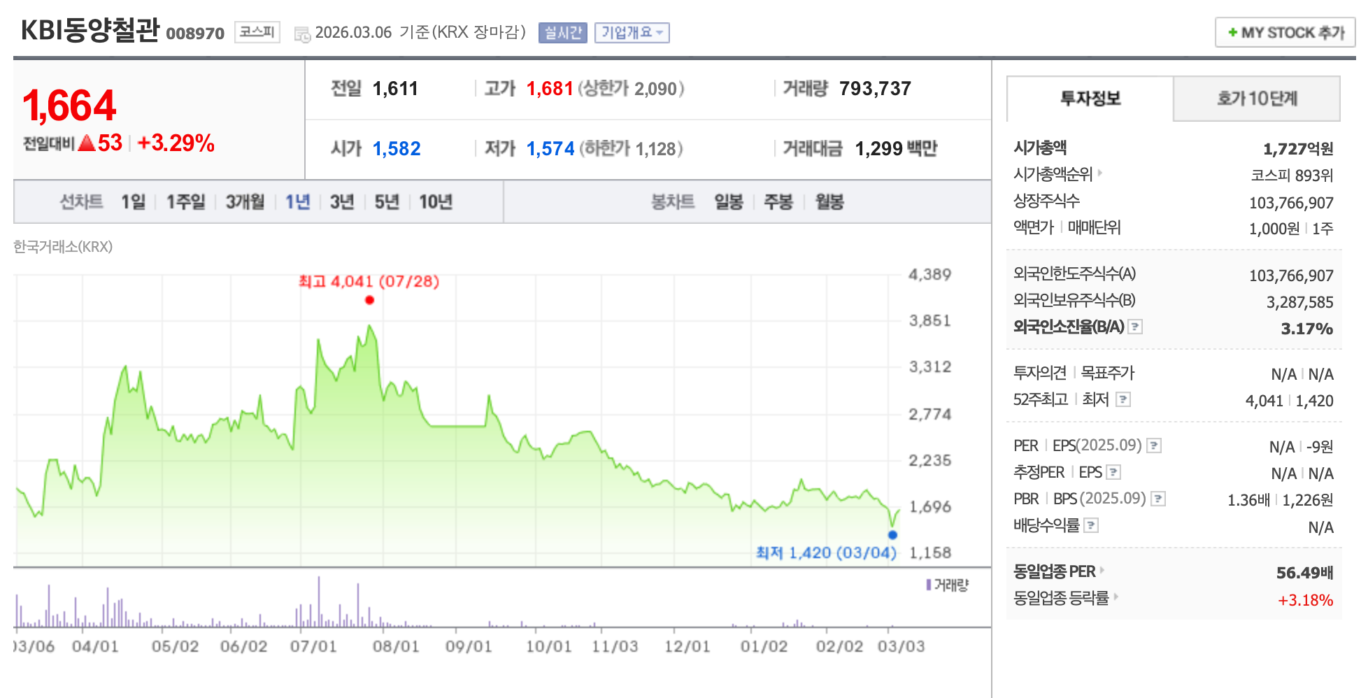 📌 동양철관 (008970, 코스피) - 알래스카 대장주