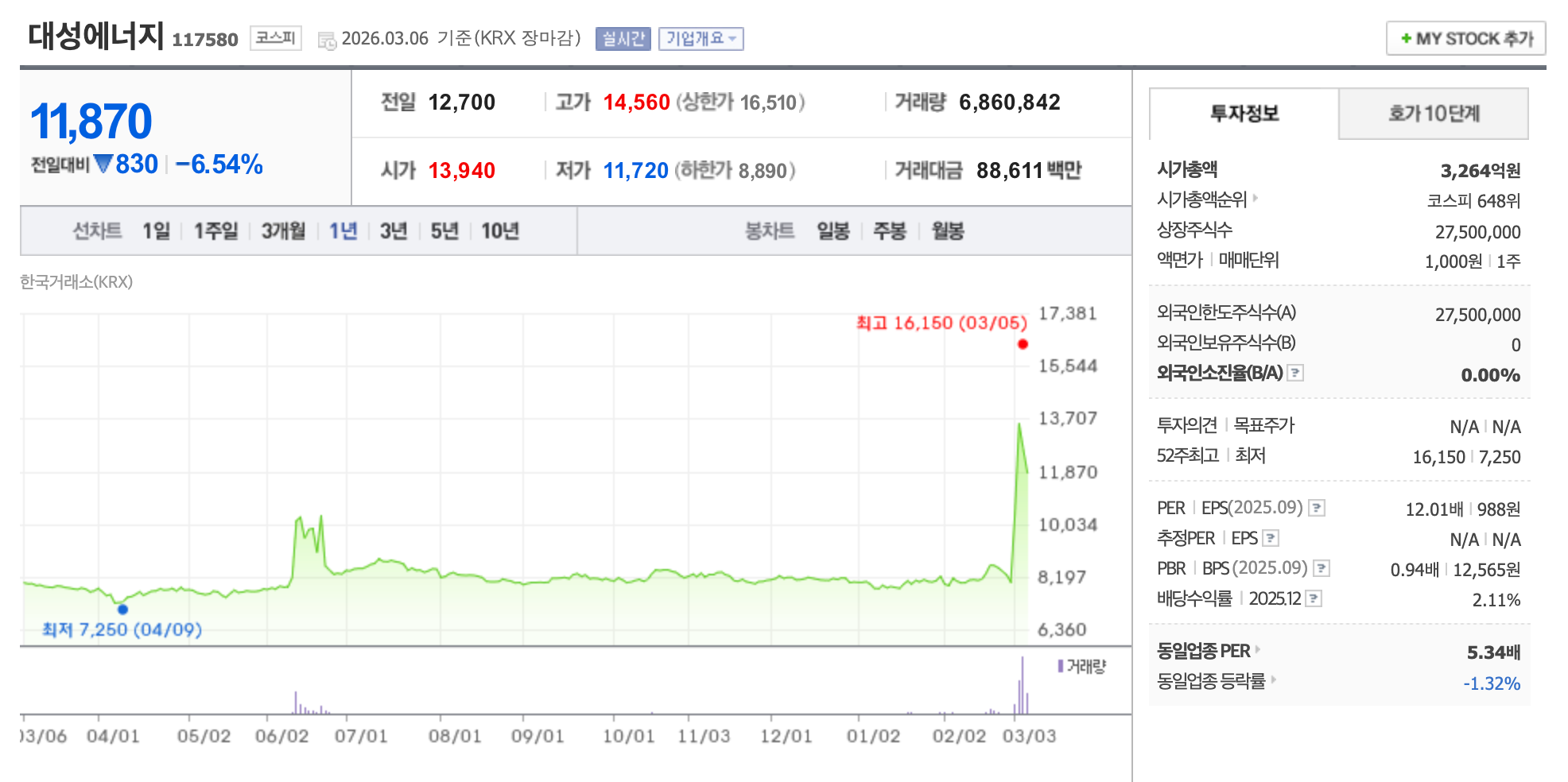 - 차별점: 천연가스 테마에서 상한가 이력 보유. 시가총액이 작아 등락폭 극심. 테마 반응 속도 빠름