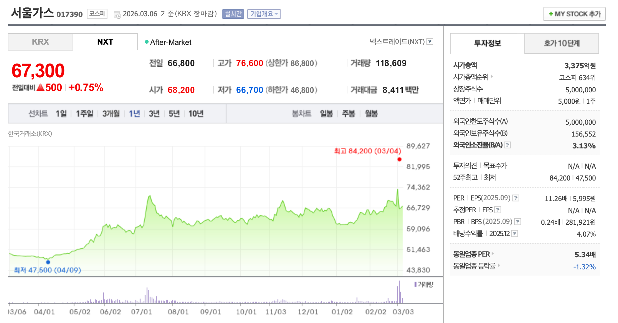 💡 서울가스 (017390, 코스피) / 인천도시가스 (034590, 코스피) / 경동도시가스 (012320, 코스피) / 부산가스 (015350, 코스피)