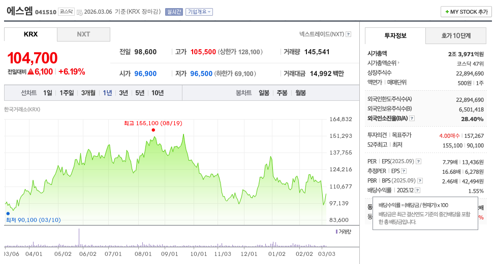 - 사업 연관도: 멜론(음원 플랫폼 점유율 26%) 운영, 음원·음반 유통, 아티스트 기획·제작(스타쉽·이담·안테나 등 산하 레이블)을 수직 계열화한 구조입니다. SM엔터테인먼트(에스파, NCT, 레드벨벳 등)의 지분 약 40%를 보유하고 있습니다.
