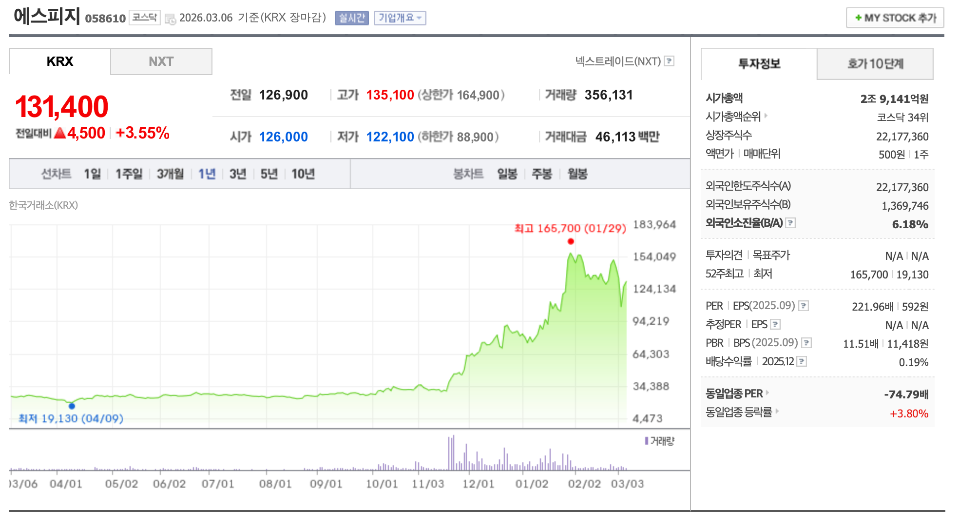 ⚠️ 6위. 에스피지 (감속기 / 간접 수혜)