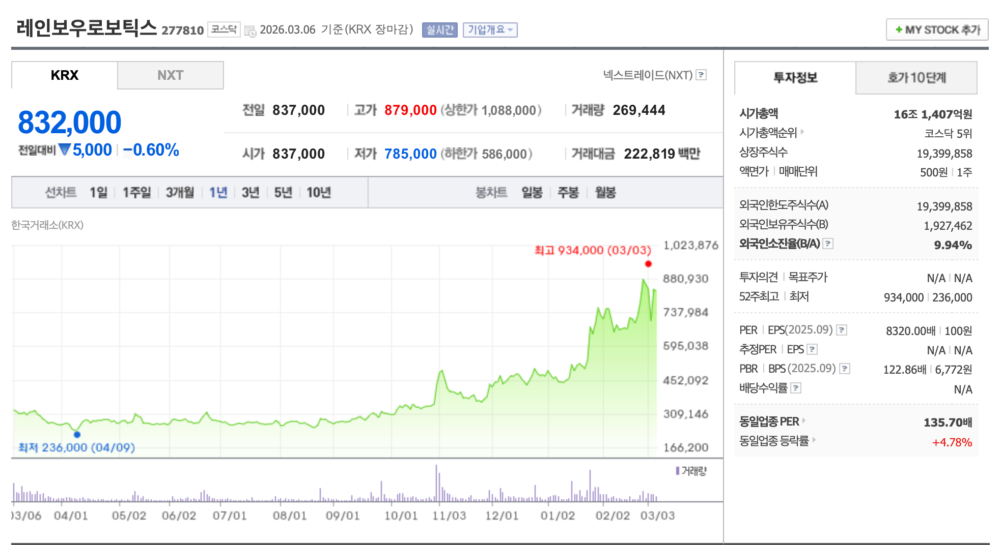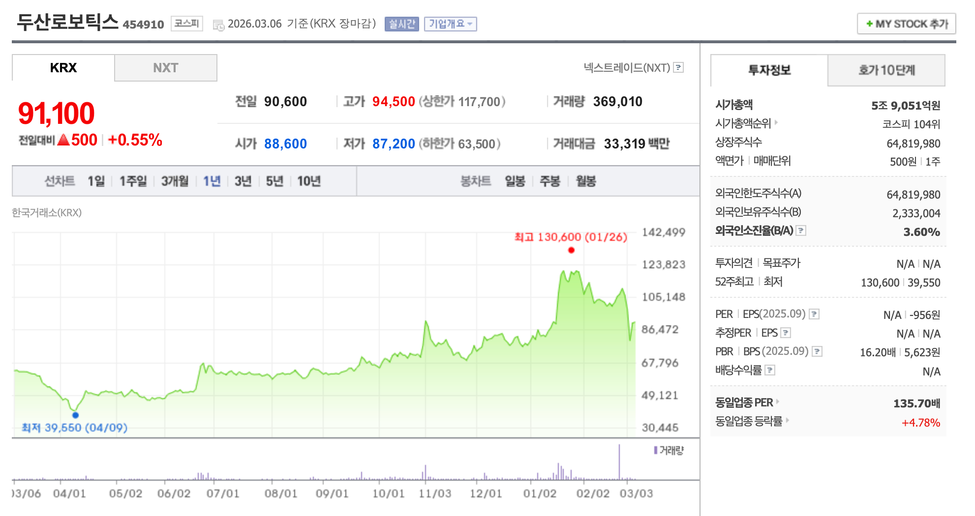 - 리스크: 적자 지속 중이며, 휴머노이드 상용화까지 자금 소진 리스크가 존재합니다. 주가 변동성이 매우 큽니다.