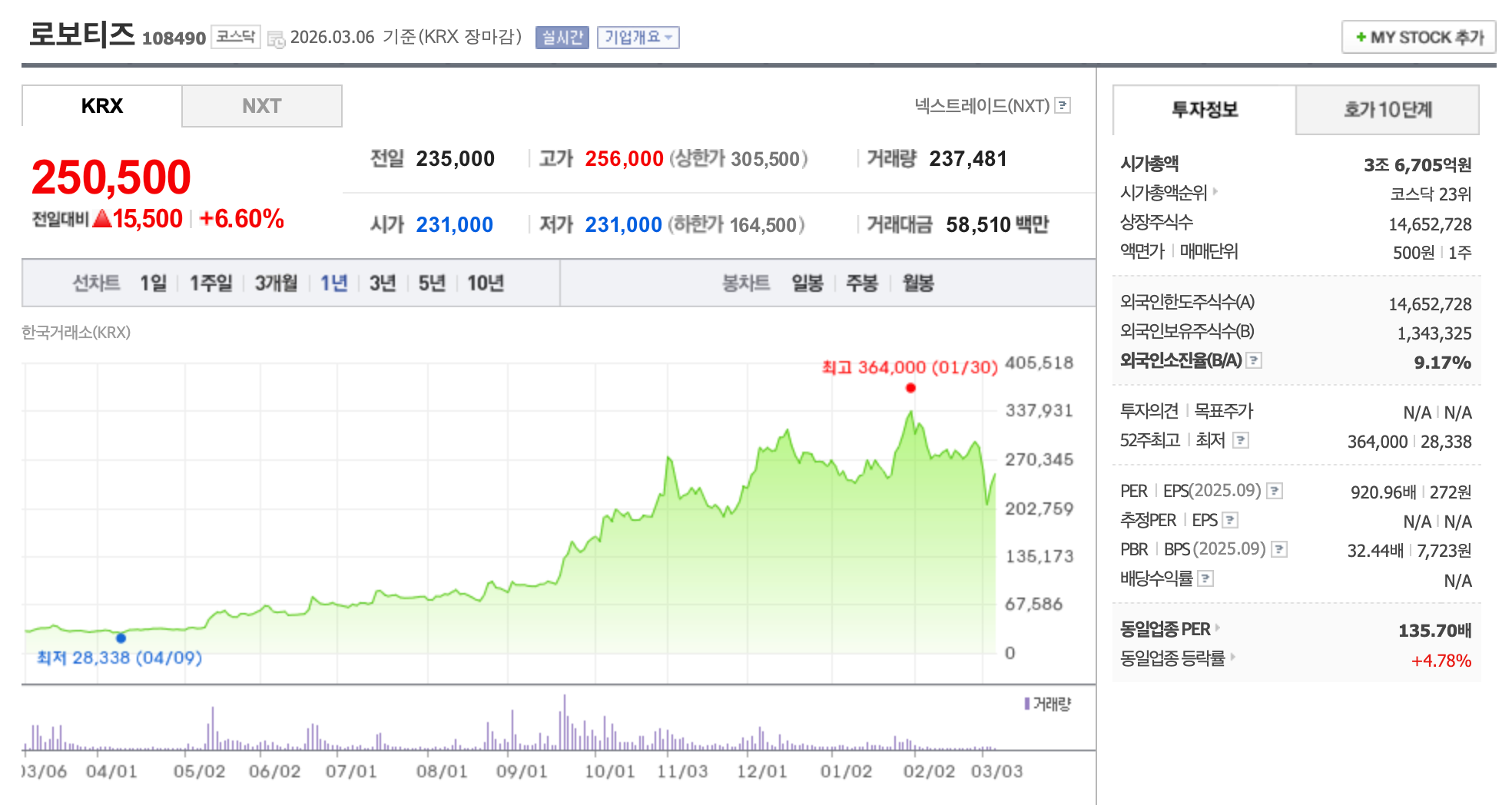 ⚠️ 7위. 로보티즈 (서비스 로봇 / 간접 수혜)