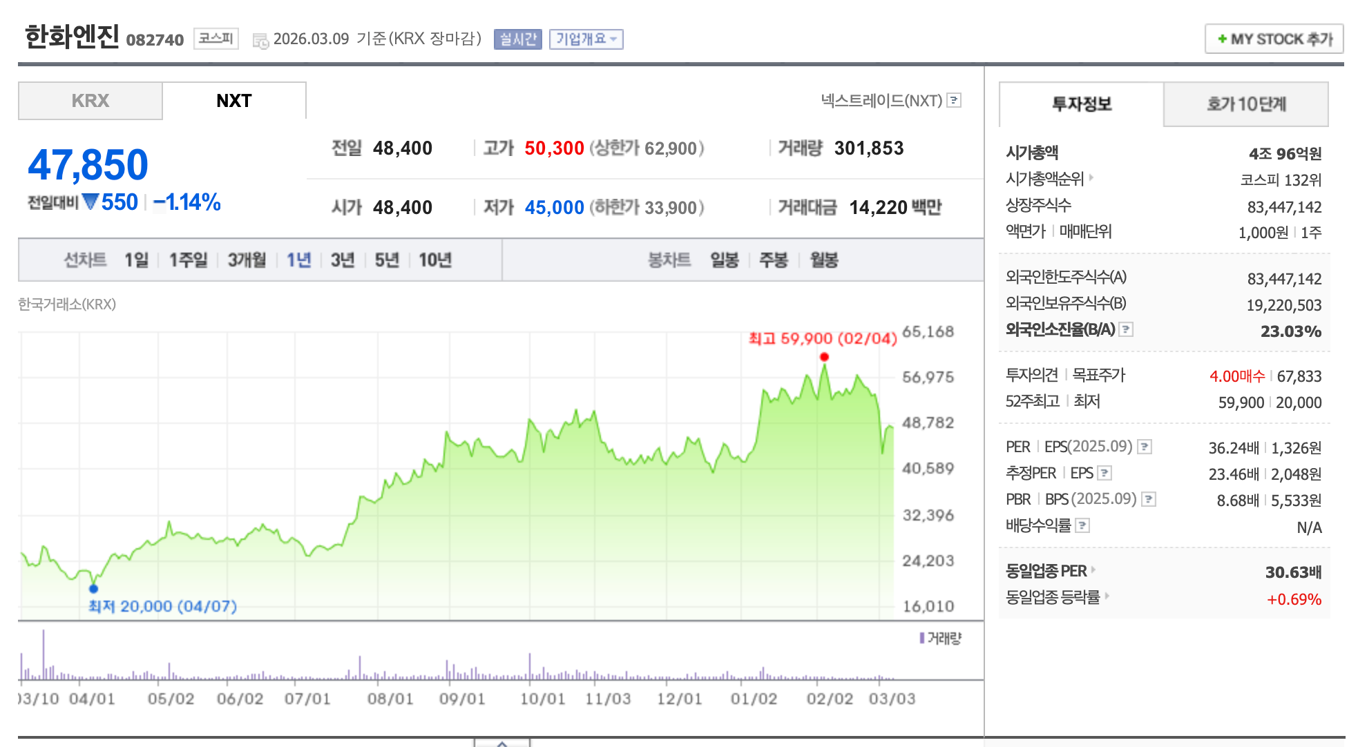 - 차별점: 국내 2대 선박 엔진 제조사 중 하나(HD현대마린엔진과 양분). 한화그룹 방산·에너지 시너지로 LNG·방산 복합 수혜 가능.