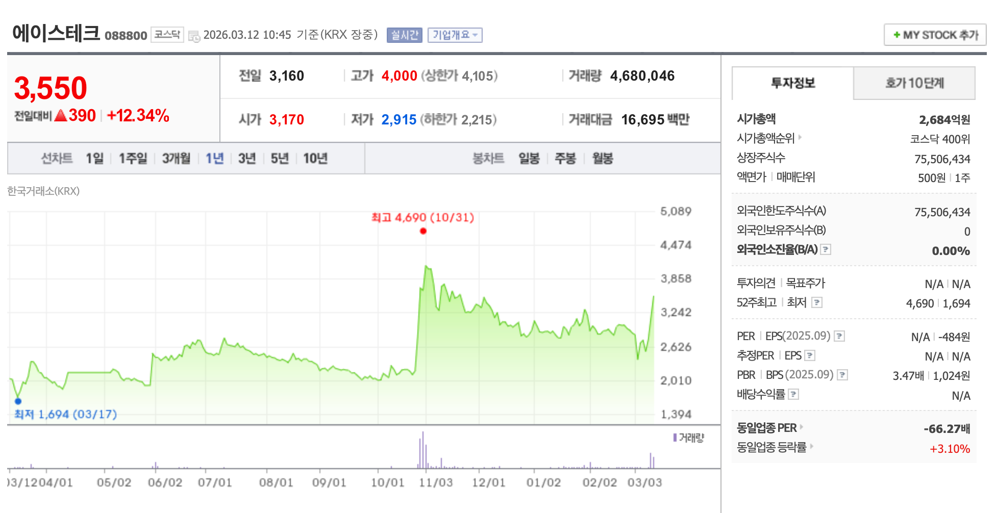 💡 4위: 에이스테크 (241840) — 차량용·방산 통신안테나