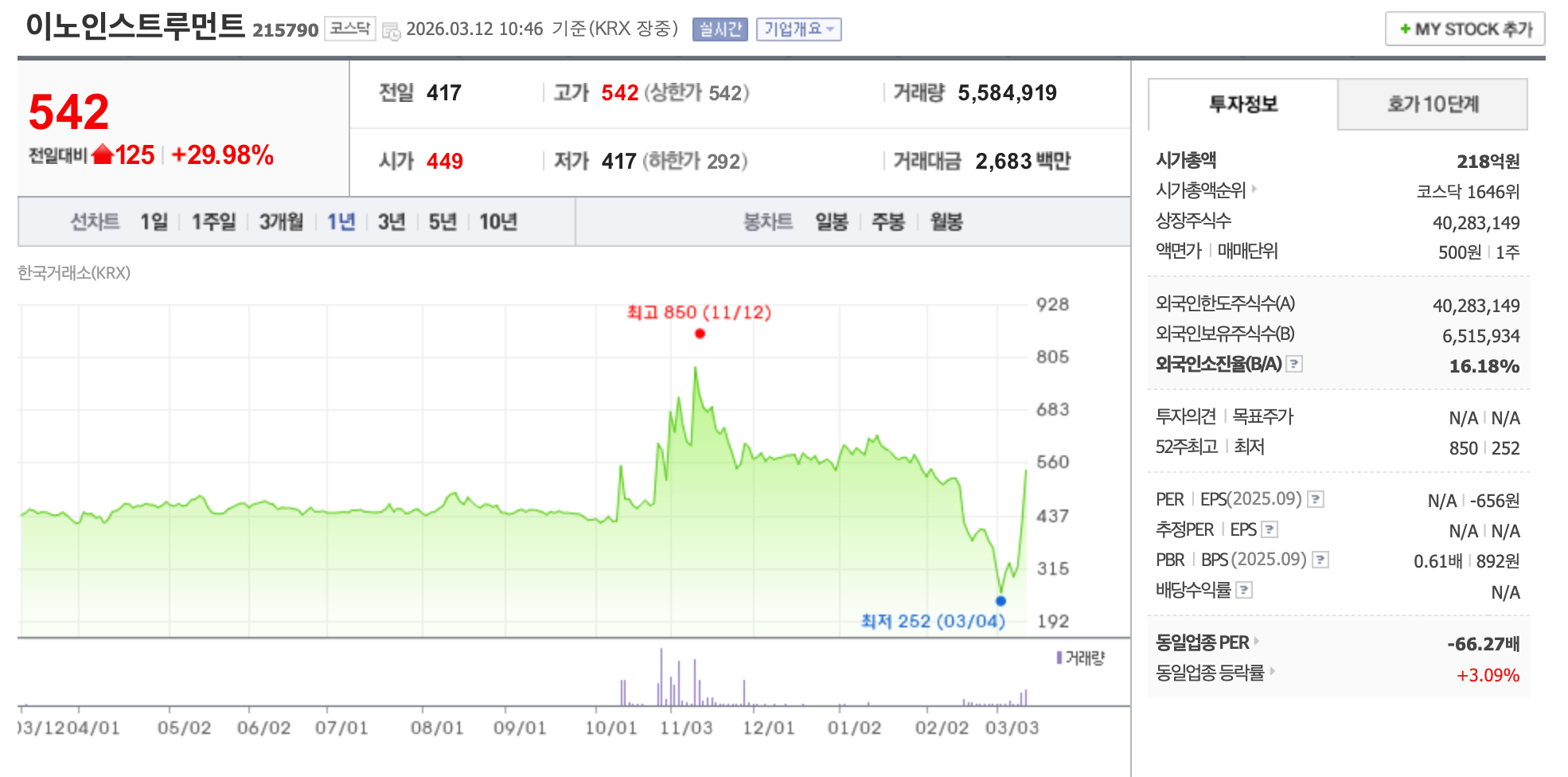 💡 6위: 이노인스트루먼트 (215790) — 6G 광통신 핵심