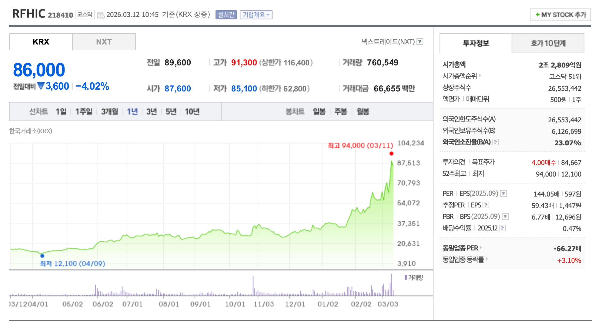 📌 2위: RFHIC (218410) — GaN 전력증폭기 국내 유일 양산