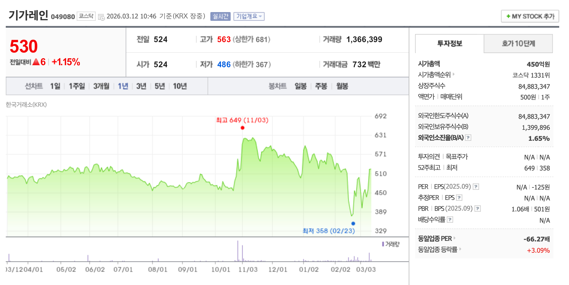 💡 5위: 기가레인 (049080) — 초고주파 필터·모듈