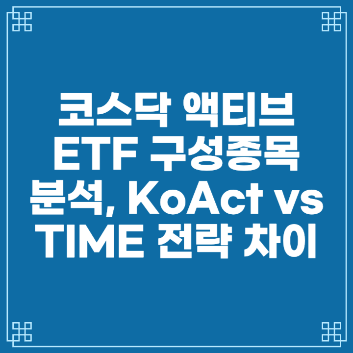 - KoAct(삼성액티브)는 중소형 성장주 공격 편입으로 첫날 +11.94%, TIME(타임폴리오)은 대형 우량주 안정 배치로 +4.13%를 기록했습니다. 보수는 KoAct 연 0.50%, TIME 연 0.80%입니다