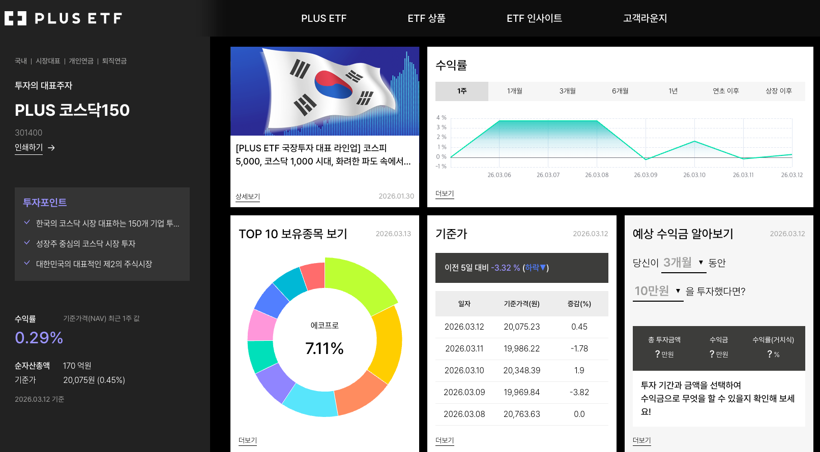 - 특징: 위 두 상품이 코스닥 전체를 대상으로 하는 반면, 한화는 코스닥150으로 범위를 한정