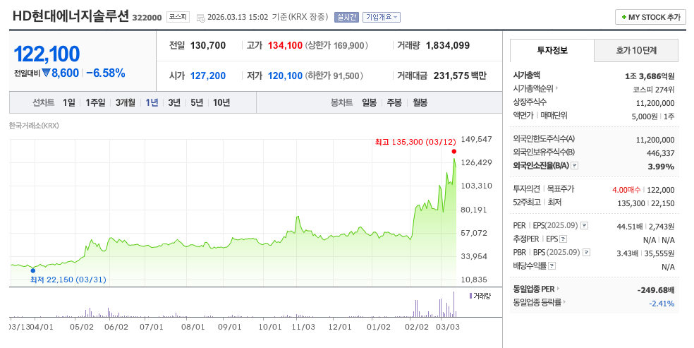 💡 HD현대에너지솔루션 (322000) — 국내 태양광 모듈 1위