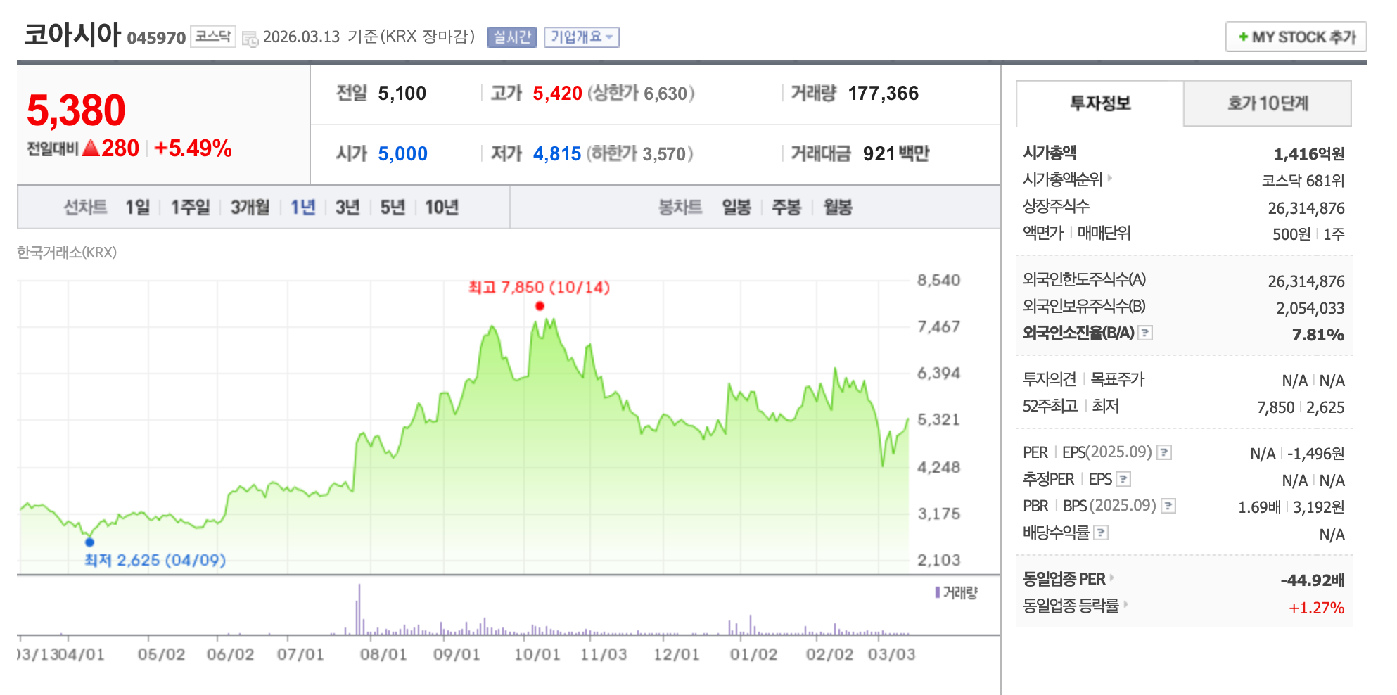 밸류에이션이 이미 높습니다 가온칩스는 저점 대비 주가가 7배 이상 뛴 상태입니다. 2026년 영업이익 300억 원 전망 기준으로도 PER이 상당히 높습니다. 성장 기대감이 주가에 상당 부분 반영된 상태이므로, 실적이 컨센서스에 못 미치면 급락 위험이 있습니다.