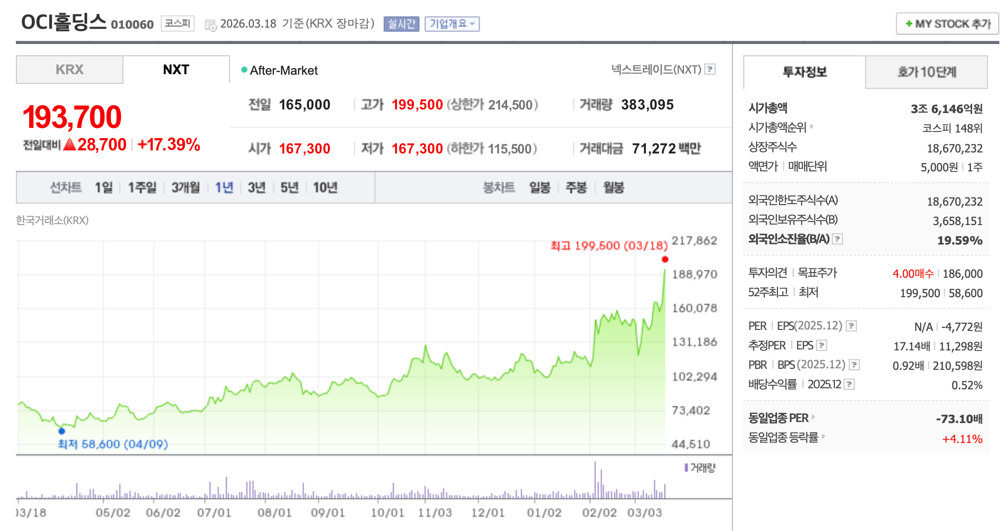- 수혜주: HD현대에너지솔루션(장중 +24%), 한화솔루션(+7%), OCI홀딩스(+4%)