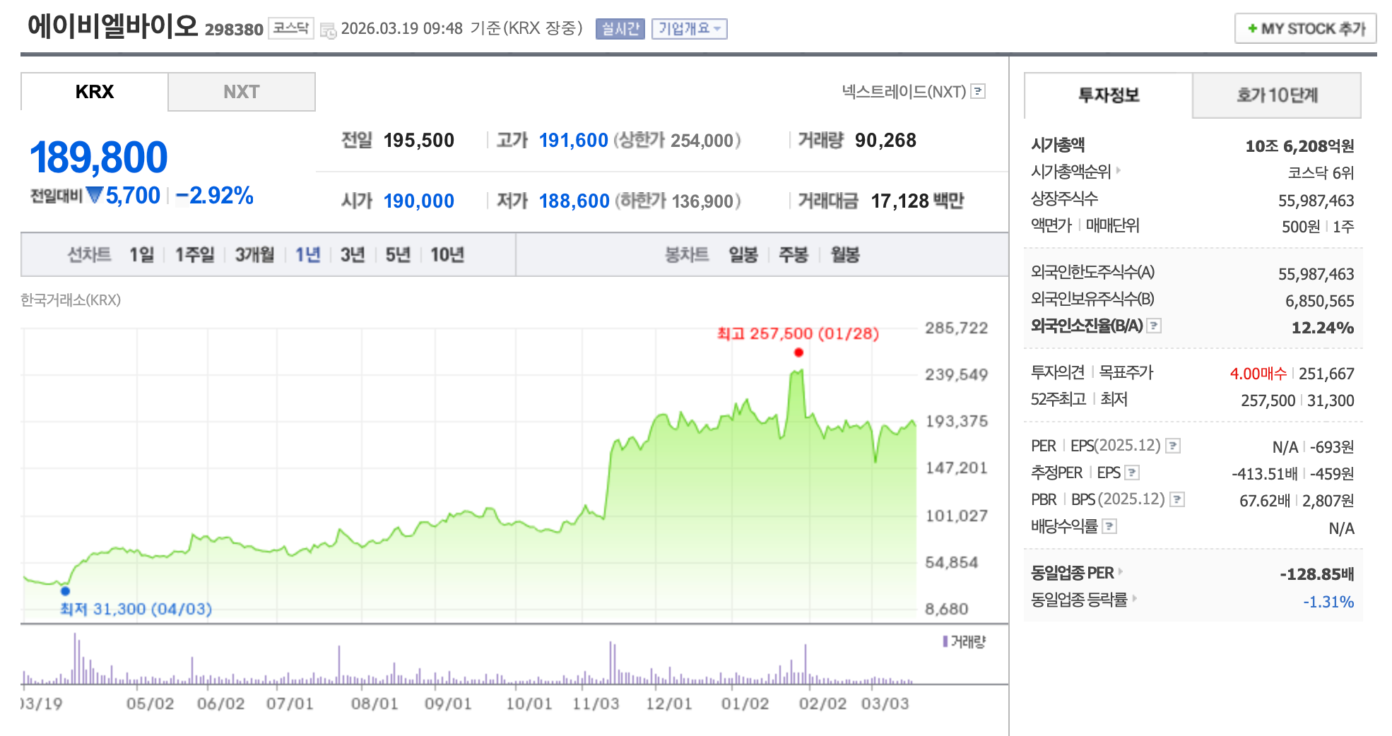 - 리스크: 에이비엘바이오 기술이전 계약 반환 이력. 삼성바이오에피스 본계약 체결이 수년째 지연 중. 현금 소진 속도 대비 추가 자금 조달 필요성