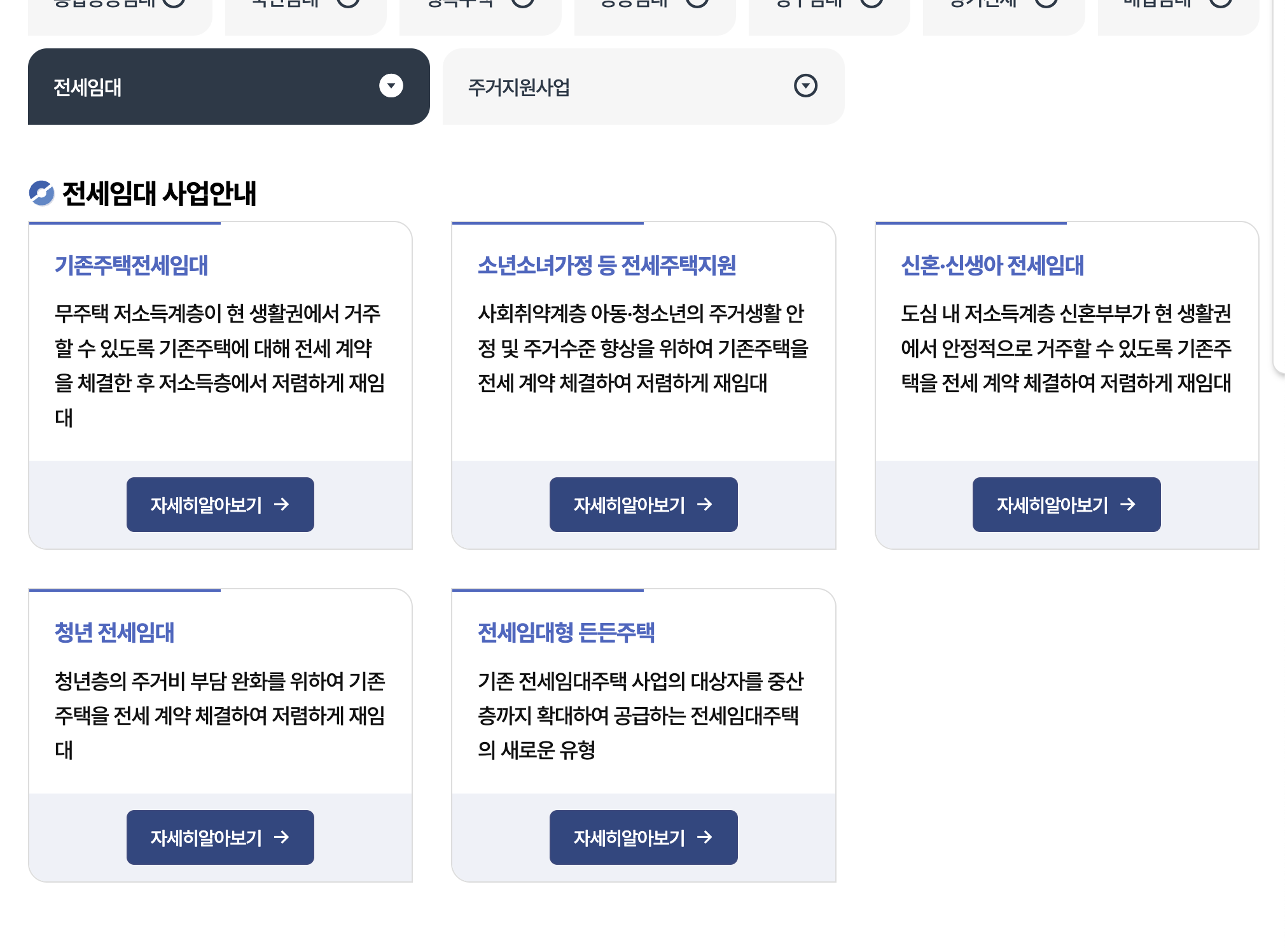 STEP 3. '임대주택' → '청약신청하기' → '전세임대' 선택