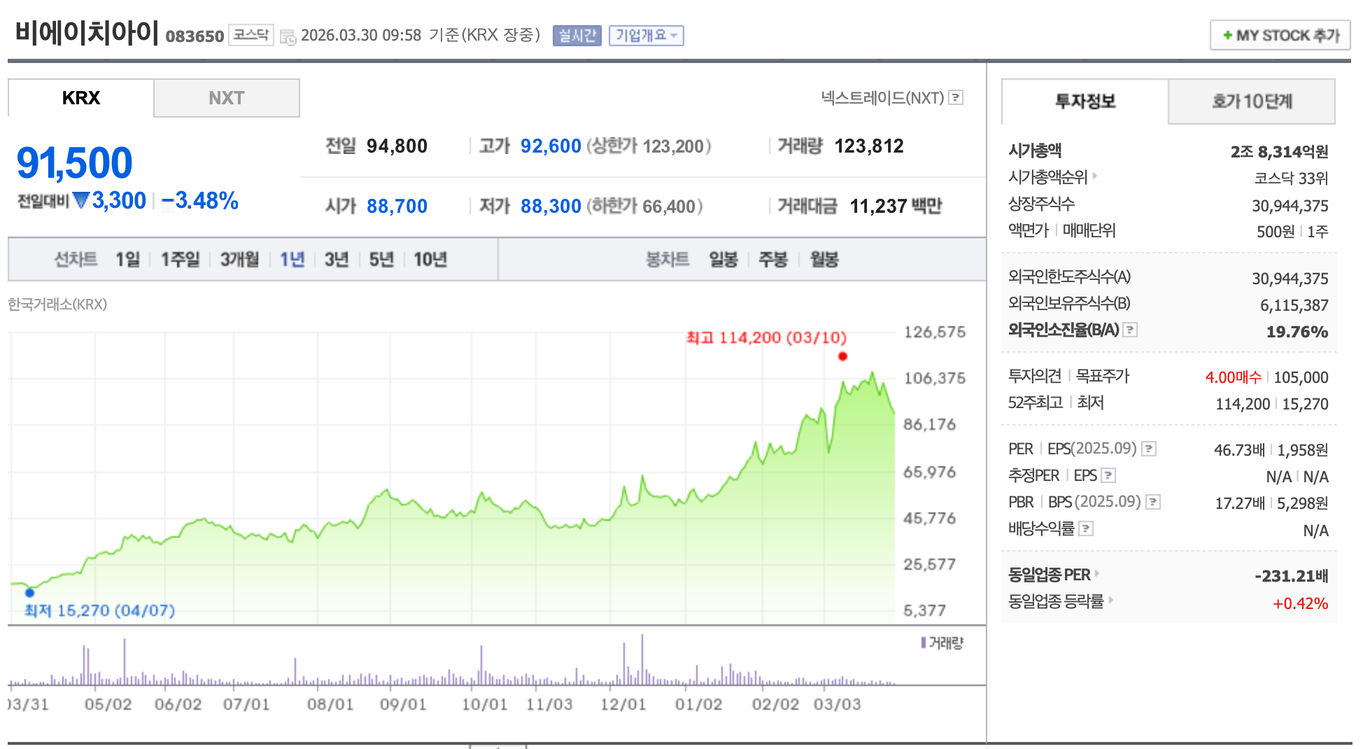 - 리스크: 유동성 부족, 극심한 변동성. 일중 변동폭 3,500원 이상 기록