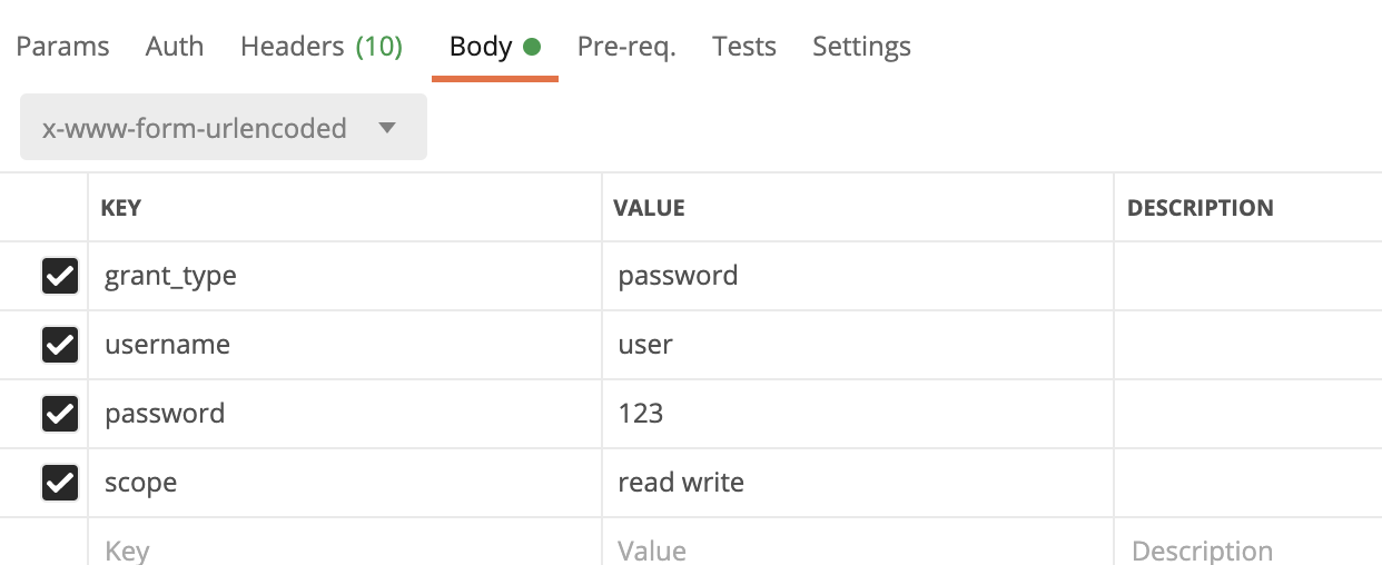 grant_type 은 password 로 입력
